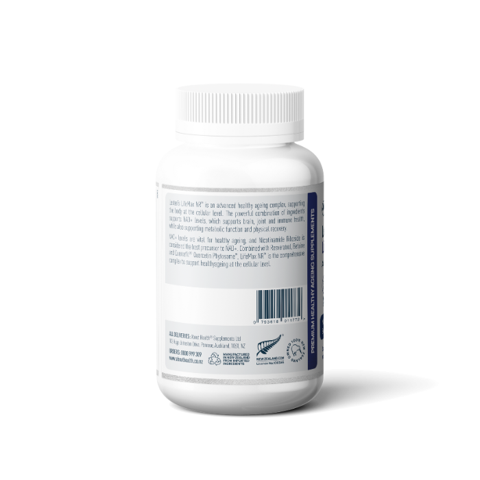 LifeMaxNR contains a powerful combination of ingredients such as high-quality nicotinamide riboside (NR), resveratrol, turmeric, betaine and quercetin to provide advanced and comprehensive healthy ageing support.