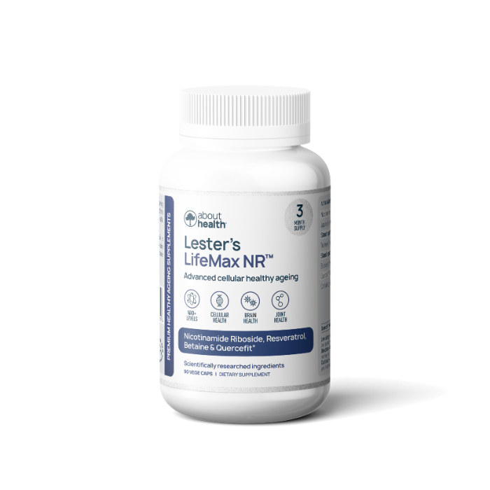 LifeMax NR™ is About Health's premium healthy ageing formula, which supports cellular energy production (NAD+), brain, joint, immune and heart health, DNA repair and healthy inflammation.