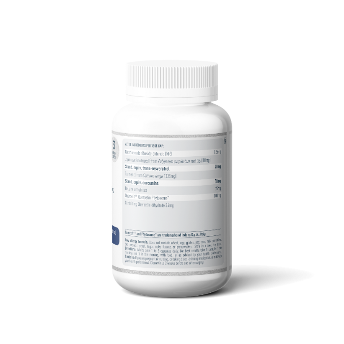 Resveratrol, another key ingredient, is a well-known sirtuin activating compound. Sirtuins are a group of proteins that help to regulate things like circadian rhythm, glucose and fat metabolism and healthy ageing. Sirtuins require NAD+ to function, hence why it is so important to boost NAD+ levels!